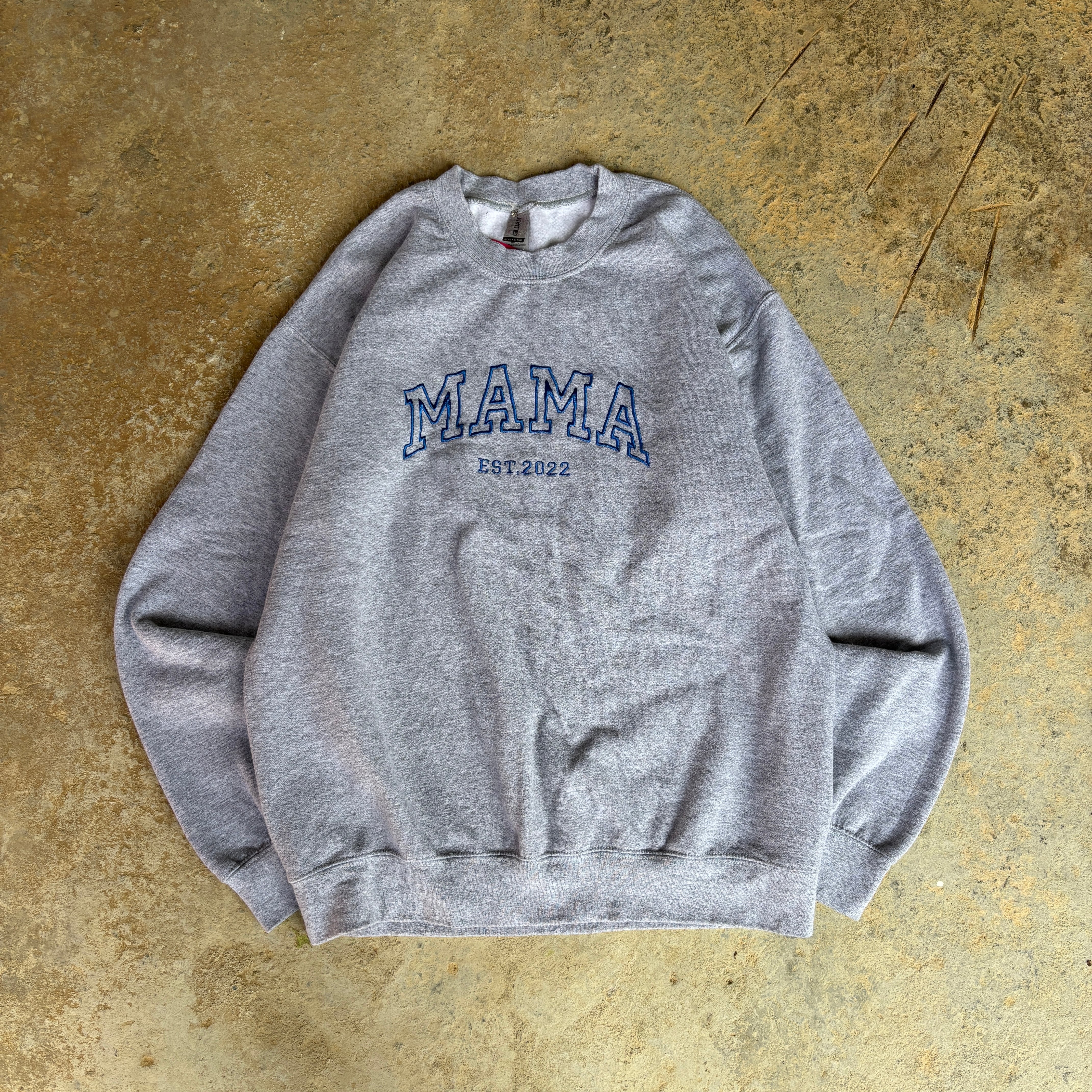 GILDAN HEAVY BLENDこのラインは、コットンとポリエステルの混紡50/50で、裏地が起毛しているのが特徴です。 グレーのボディにブルーのMAMAの刺繍がシンプルながらも可愛らしい一着です。 軽くて温かい、洗濯しても乾きやすいく日常使いに適したタフな作りとなっています! 肩幅約55cm 身幅約55cm 着丈約66cm 袖丈約55cm 20648453