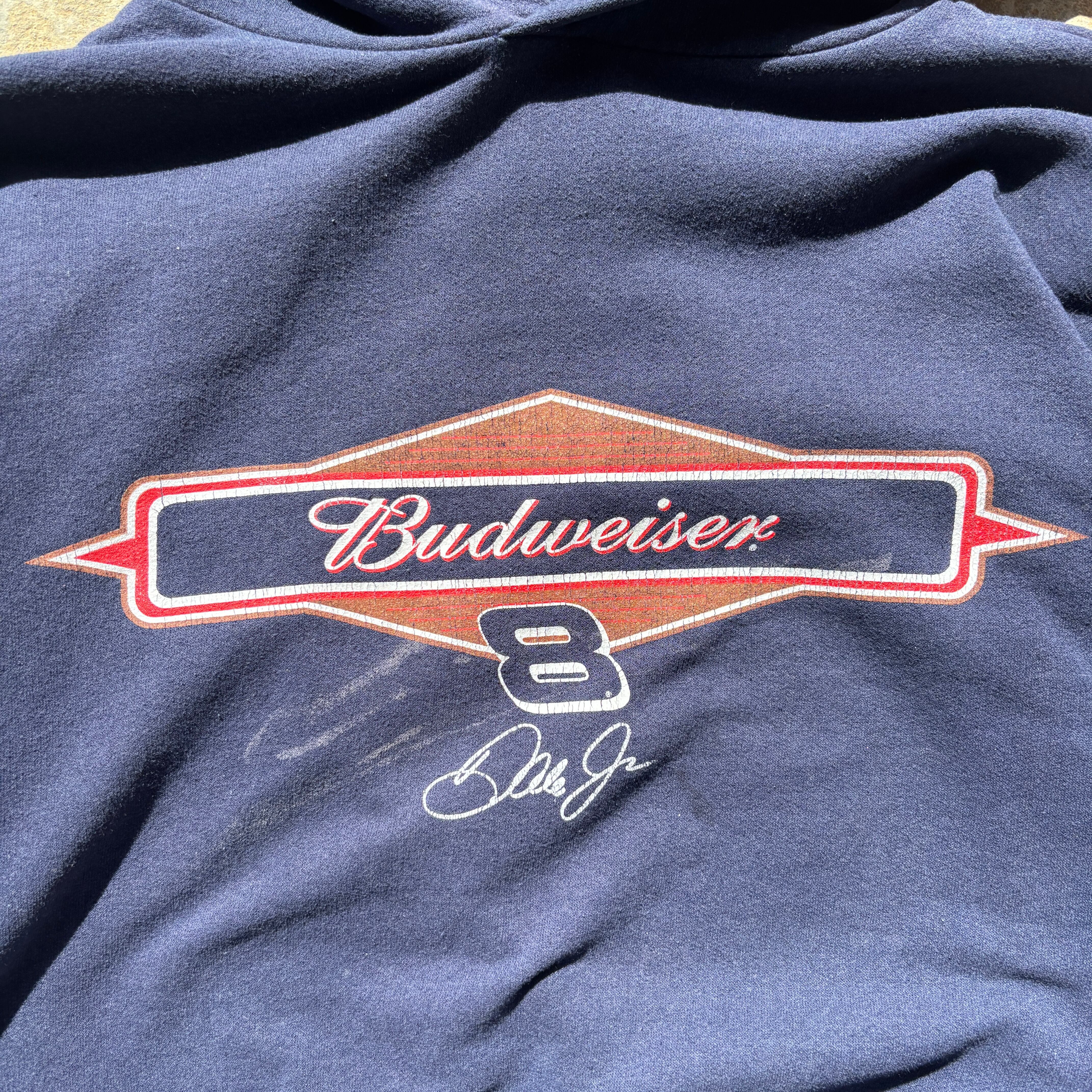 Budweiser バドワイザーは、元NASCARドライバーのデイル・アーンハート・ジュニアのメインスポンサーでした。バドワイザーのロゴの下には、彼の当時の車番8がデザインされています! 肩幅約70cm 身幅約69cm 着丈約72cm 袖丈約57cm 20648478