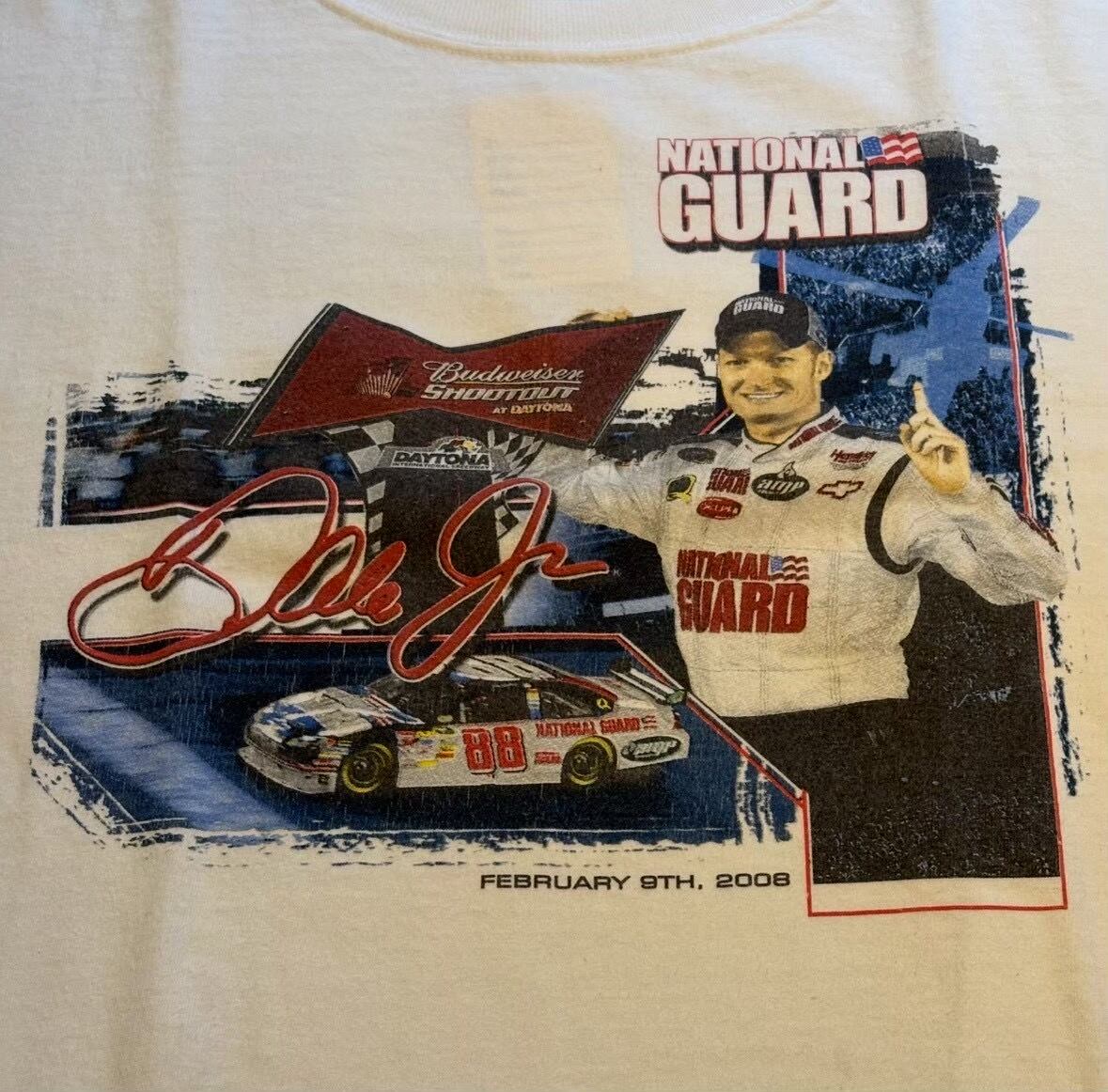 このTシャツの下部に記されている2008年2月9日という日付は、彼がヘンドリック・モータースポーツ(Hendrick Motorsports)に移籍して初めてのレース、バドワイザー・シュートアウト(Budweiser Shootout)で優勝した記念すべき日を指しています。