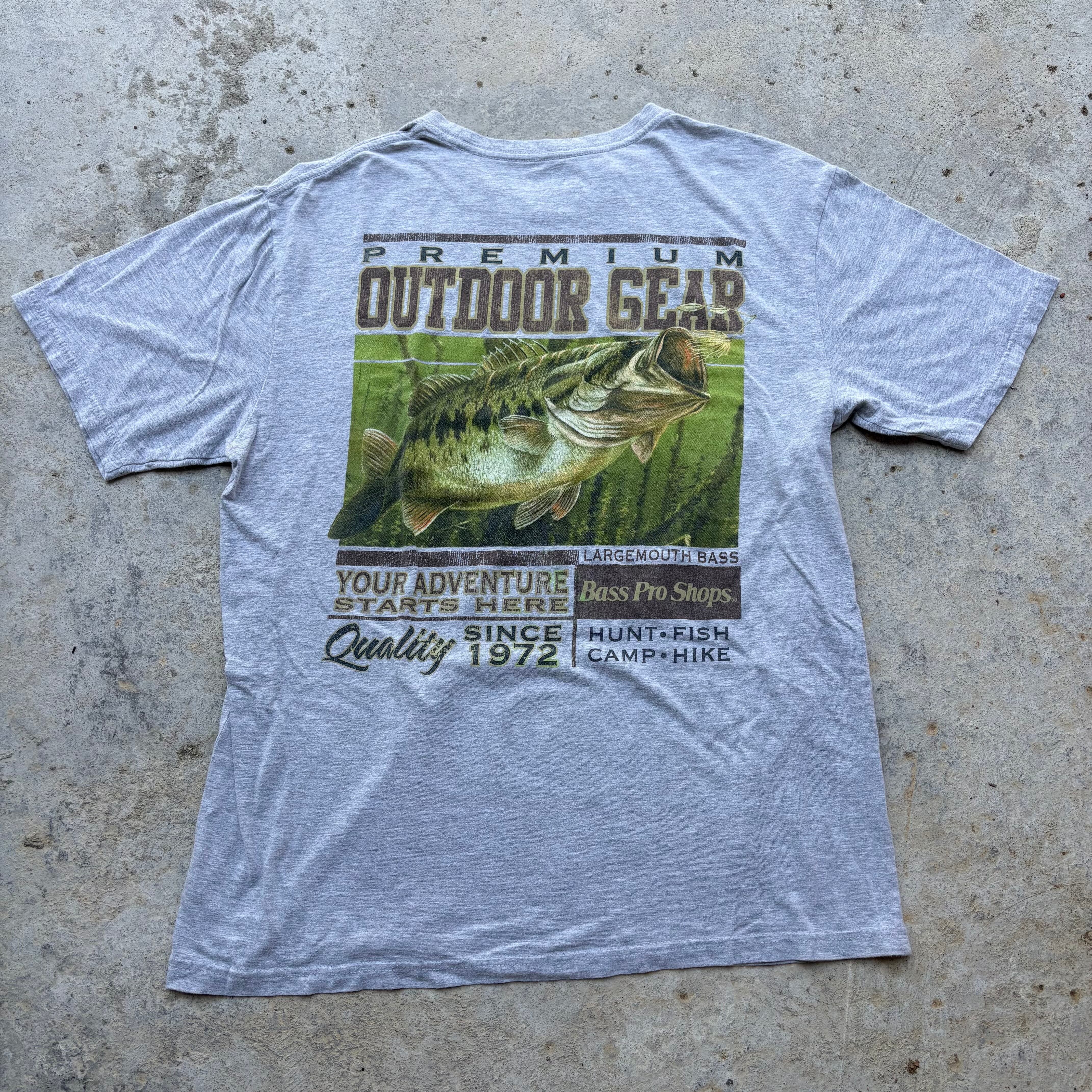 Bass Pro Shops(バスプロショップス)の「Wildlife Bass Short-Sleeve T-Shirt(ワイルドライフ バス ショートスリーブ Tシャツ)」、または「Premium Outdoor Gear Bass Short-Sleeve T-Shirt」と呼ばれるモデルです。