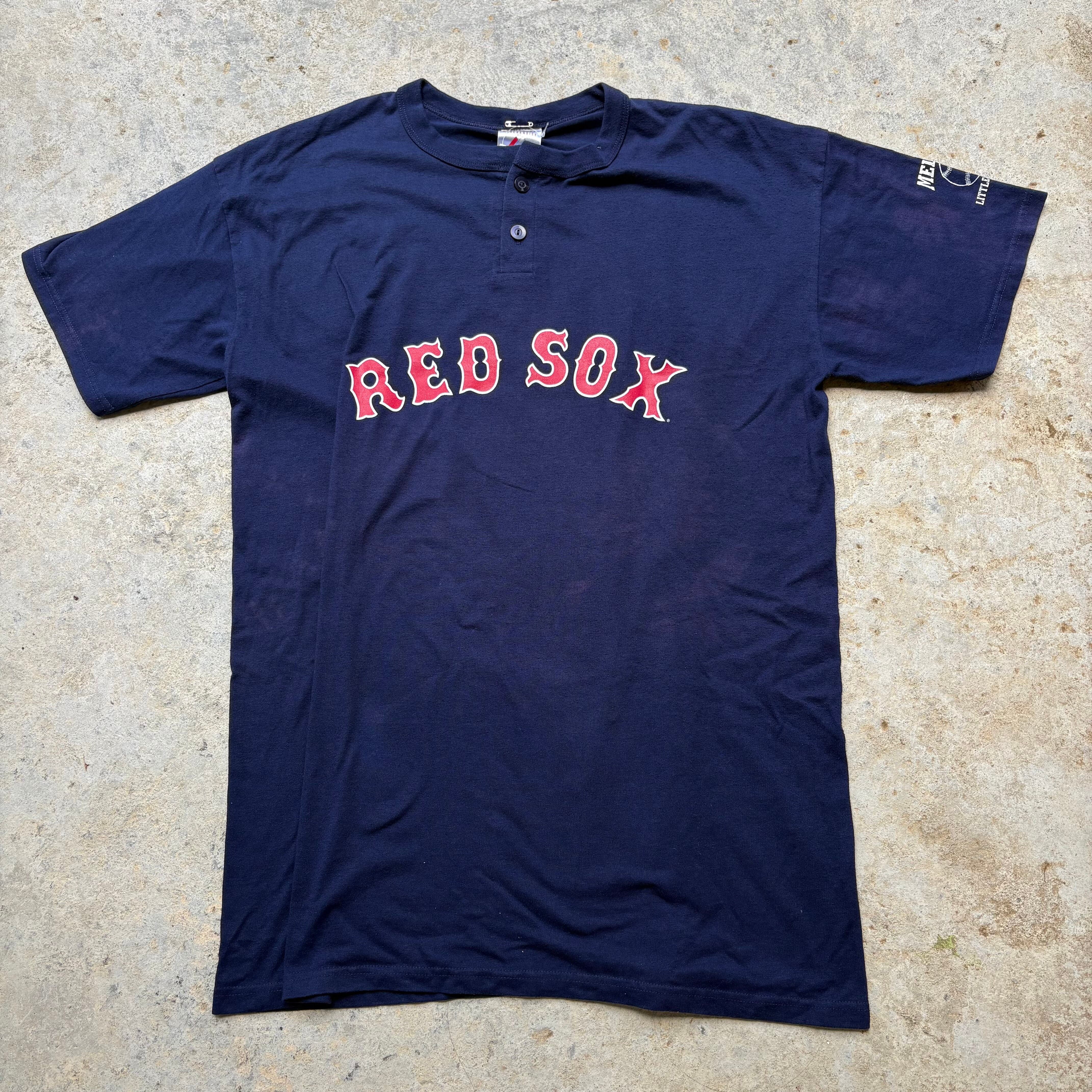 MLB (メジャーリーグベースボール)のボストン・レッドソックスのヴィンテージTシャツ、特にヘンリーネックのデザインが特徴的な一着です 肩幅約59cm 身幅約59cm 着丈約79cm 袖丈約20cm 20643765